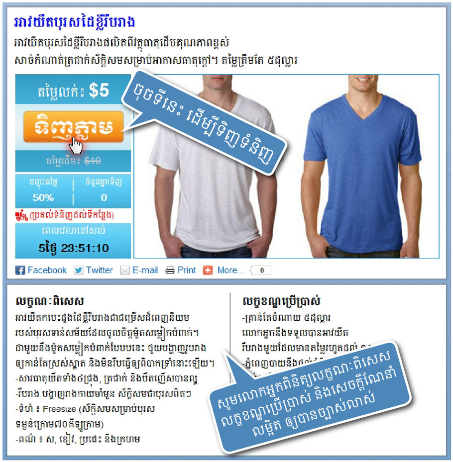 | សូមលោកអ្នកពិនិត្យចំណុចពិសេស, លក្ខខណ្ឌប្រើប្រាស់ និងសេចក្តីណែនាំលម្អិតនៃផលិតផលឲ្យ បានច្បាស់លាស់ជាមុនសិន មុននឹងសម្រេចចិត្តចុចប៊ូតុង “ទិញភ្លាម” |
